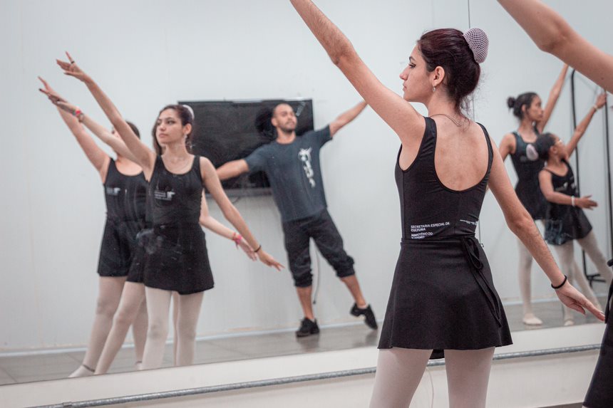 O diretor artístico do espetáculo e professor de dança da IAS, Adriano dos Santos, comenta sobre o desafio de criar movimentos corporais que façam alusão às famosas obras expostas cem anos atrás no Teatro Municipal de São Paulo.