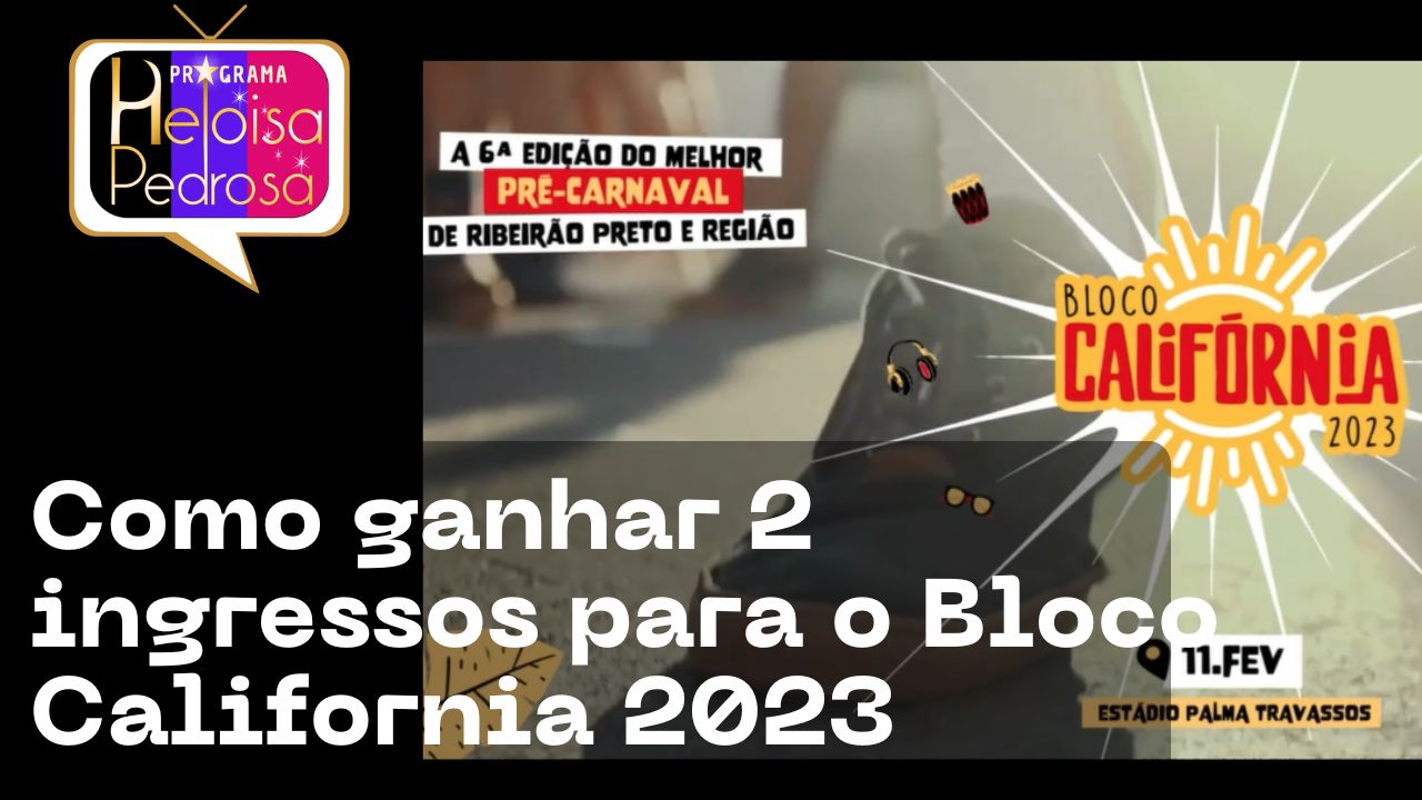 Como ganhar 2 ingressos para o Bloco California 2023 está nesse programa que reprisa de…