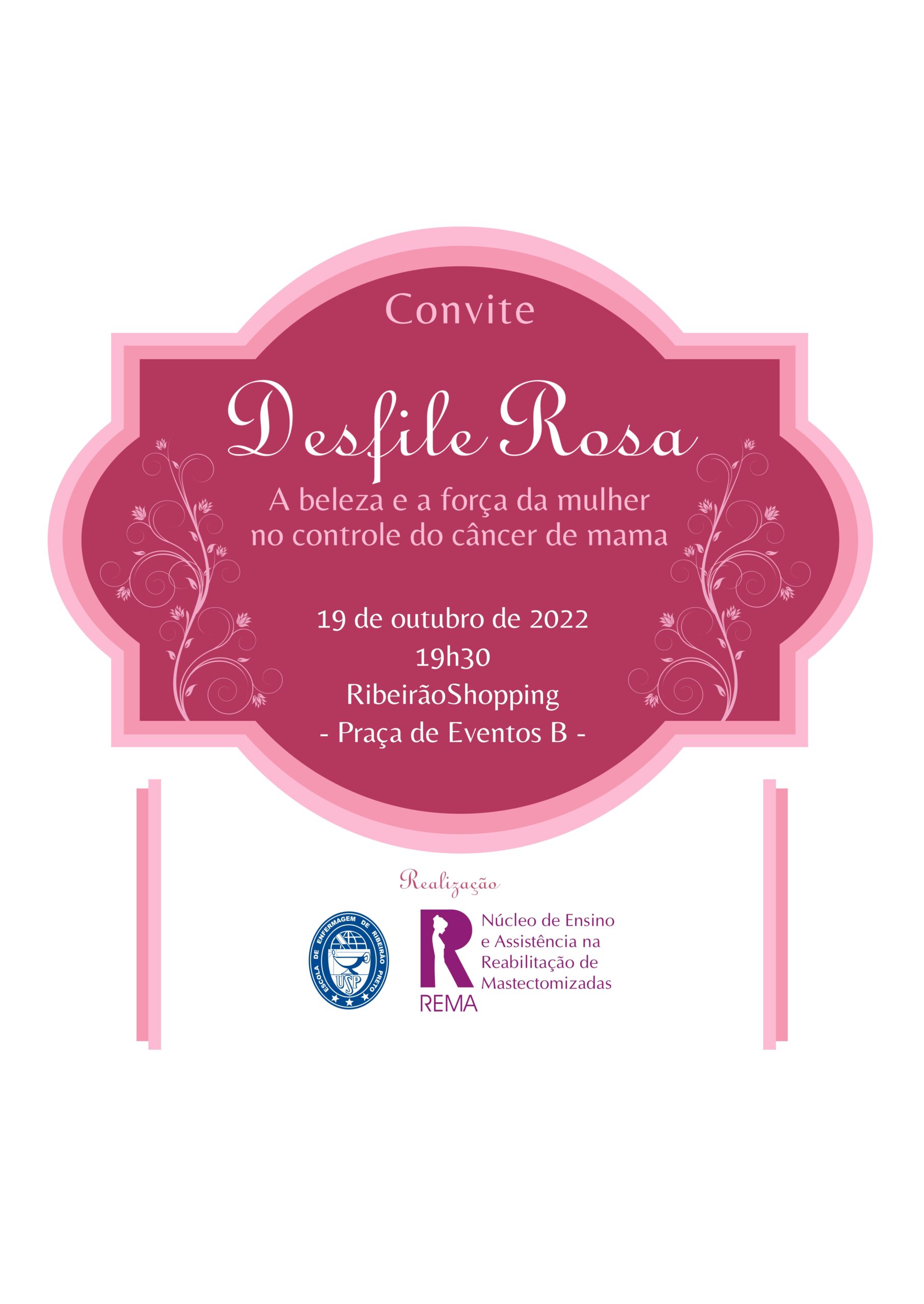 A campanha Outubro Rosa segue com mais uma atração no RibeirãoShopping. No próximo dia 19, quarta-feira, às 19h30, acontece o Desfile Rosa com a participação de 15 mulheres em processo de cura do câncer de mama, que prometem esbanjar beleza, carisma, atitude e, principalmente, otimismo. O evento tem acesso gratuito e será realizado na Praça de Eventos B do RibeirãoShopping.