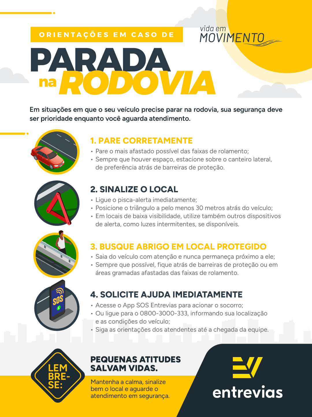 Entrevias orienta sobre os cuidados ao parar o veículo na rodovia