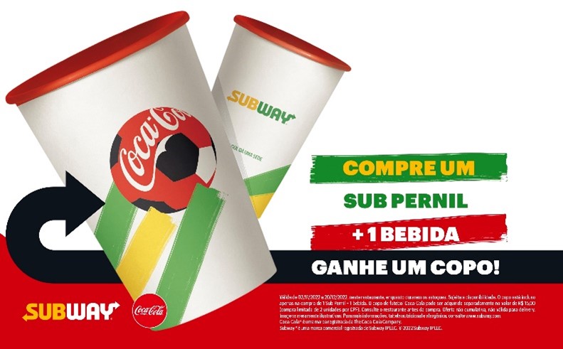 A ativação, já disponível em todas as lojas da rede, funciona da seguinte forma: na compra de um Sub Pernil + bebida, o cliente ganhará um copo especial com a temática de futebol, que vai ajudar ainda mais na hora da torcida com a galera.