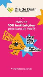 Para realizar uma doação e participar desta primeira edição que ajudará a transformar vidas, basta acessar o site diadedoarrp.com.br, escolher uma ou mais instituições cadastradas, anotar a chave pix e fazer a transferência. O doador ou a doadora poderá ainda tornar pública a sua participação compartilhando a hashtag #diadedoarrp nas mídias sociais.